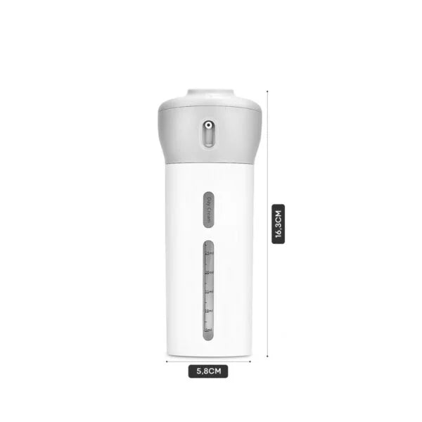 Además, su sistema de bomba de presión hace que la aplicación de tus productos sea rápida y fácil, sin derrames ni residuos. Y con su tamaño compacto y ligero, este dispensador se convierte en una adición esencial a tu equipaje de viaje, mochila o bolso de mano.
