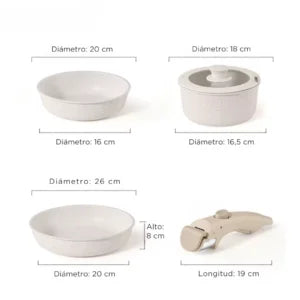 • Juego multifuncional: Incluye diversas sartenes y ollas de distintos tamaños para satisfacer cualquier necesidad de cocción.